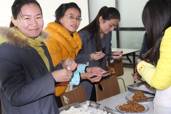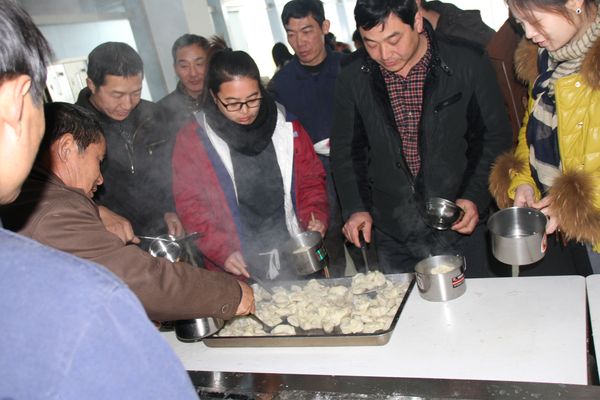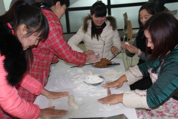我公司領(lǐng)導組織各部門人員以及一線工人,弘揚毛主席“自己動手,豐衣足食”的作風,東起全體員工自己動手包餃子。在公司領(lǐng)導的組織下,大家開始有秩序的進行準備工作,系上圍裙,有的和面、有的搟皮、有的做餃子餡。大家分開兩撥,這邊和面,那邊飽餃子,氣氛很活躍。同事們以迅雷不及掩耳之勢完成了準備工作,準備工作完成后,進入包餃子階段,雖然很多同事不怎么會包餃子,但是在別人的幫助下很快進入狀態(tài)。看著一個個新鮮出爐的餃子,同事們的表情非常精彩,相互調(diào)侃的的話也漸漸多起來,包餃子工程進入***階段,氣氛一時異?;馃?,看著同事們一個個熱情洋溢的表情,一盤盤“奇形怪狀”的餃子真是羨煞旁人!